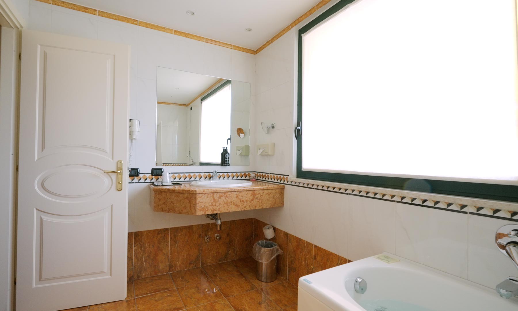 Suite of 30 m² with double whirlpool bath, TV, minibar, and Wi‑Fi. Private parking in front of the room.