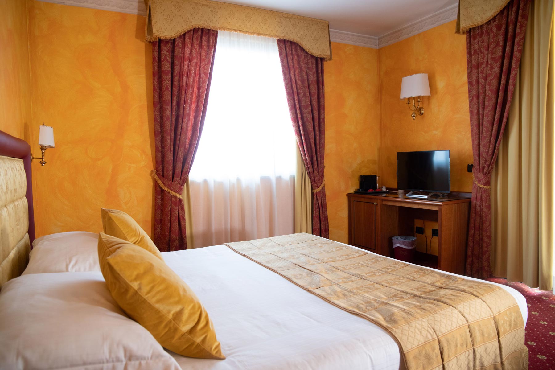 If you’re looking for a hotel in Pavia with a whirlpool bath, the Junior Suite at Hotel Del Duca is the perfect choice for an exclusive experience of comfort and relaxation. Located on the first floor, this elegant room offers an area of 26 m², featuring a spacious and comfortable double bed and a stunning whirlpool bath, ideal for a rejuvenating soak after an intense day.